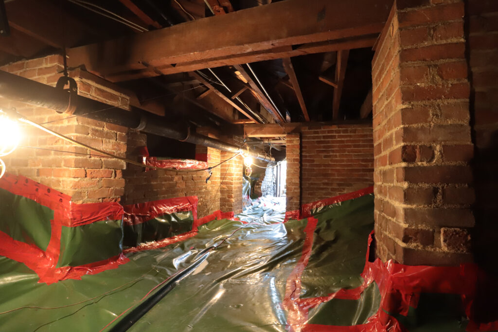 This work includes pouring of a new cement floor in the crawl space. One completed electrical and mechanical crews will start to install the new boilers and electrical system upgrades.
