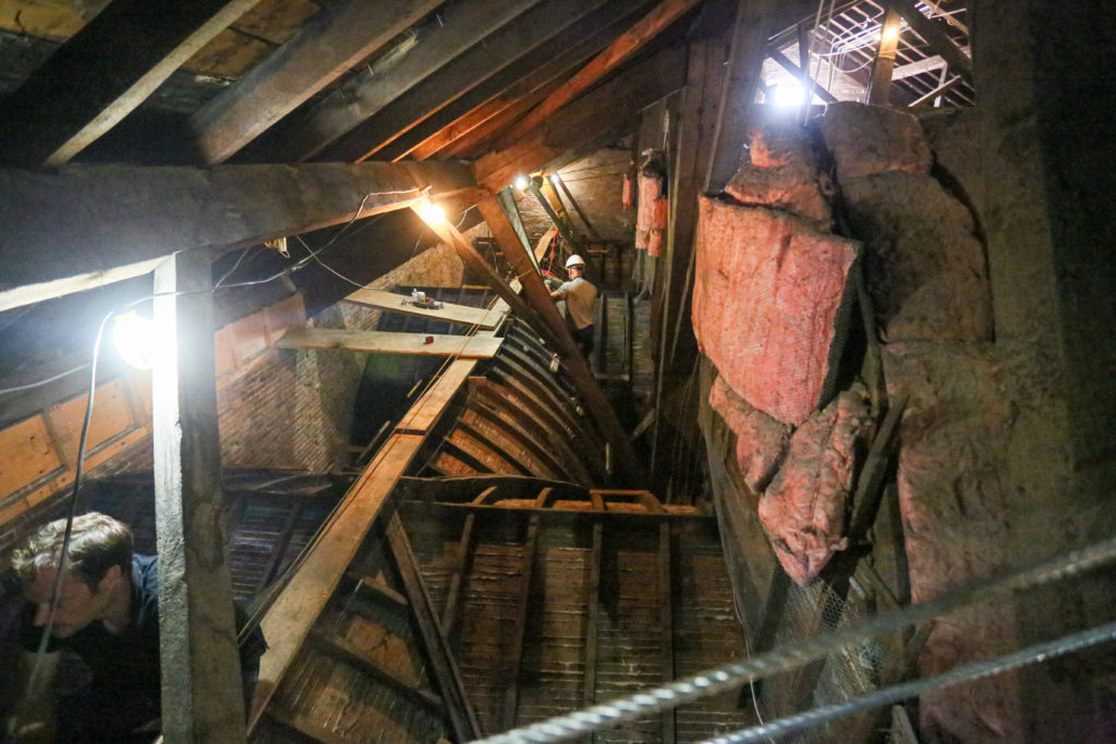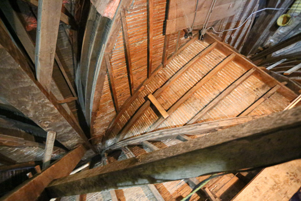 Looking into one of the ceiling’s groin vaults. In some of the vaults, more than 4 feet of debris was removed that had collected over the years.