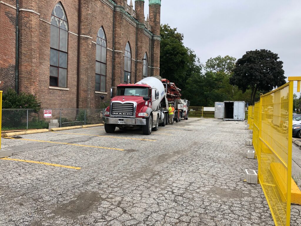 On Monday September 30th, contractions laid the new cement floor in the crawl space under the church. This is also known as a mud mat.