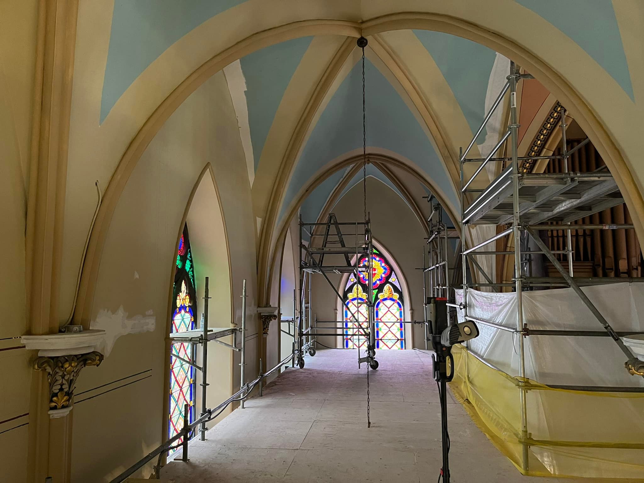 Paining has started on the west side of Assumption Church. This work is expected to last until after Labour Day,