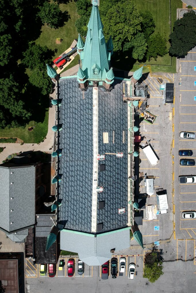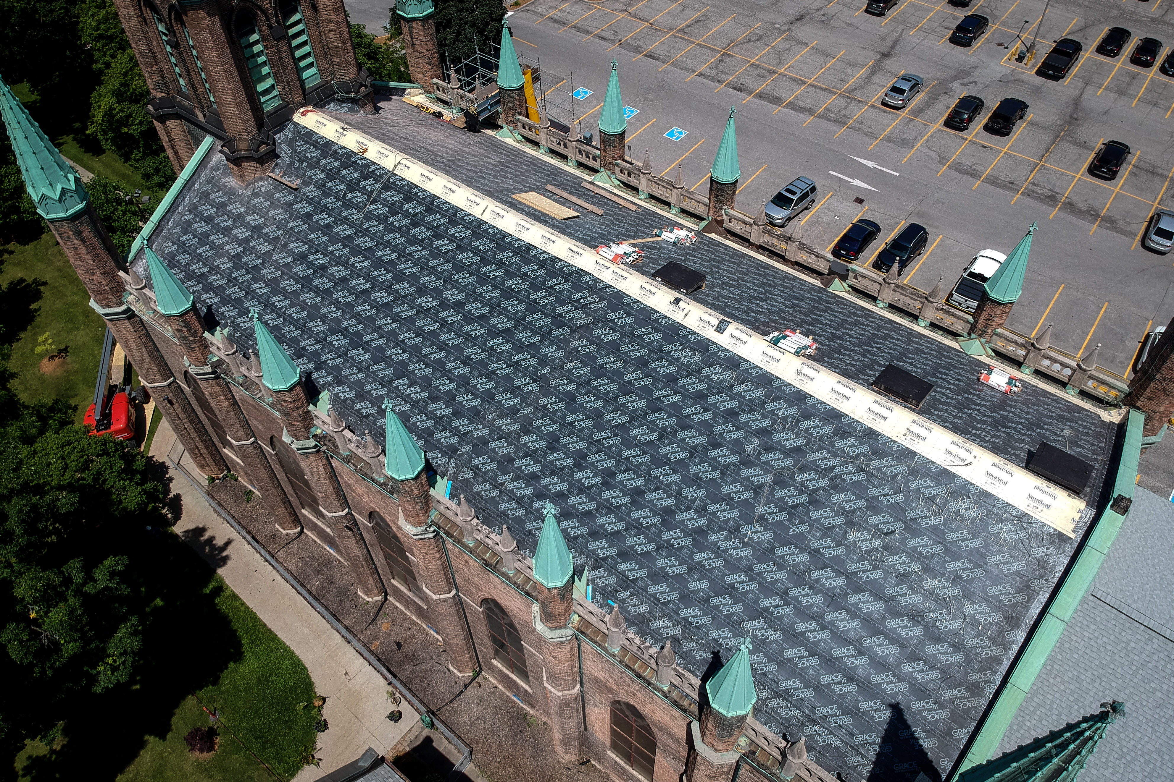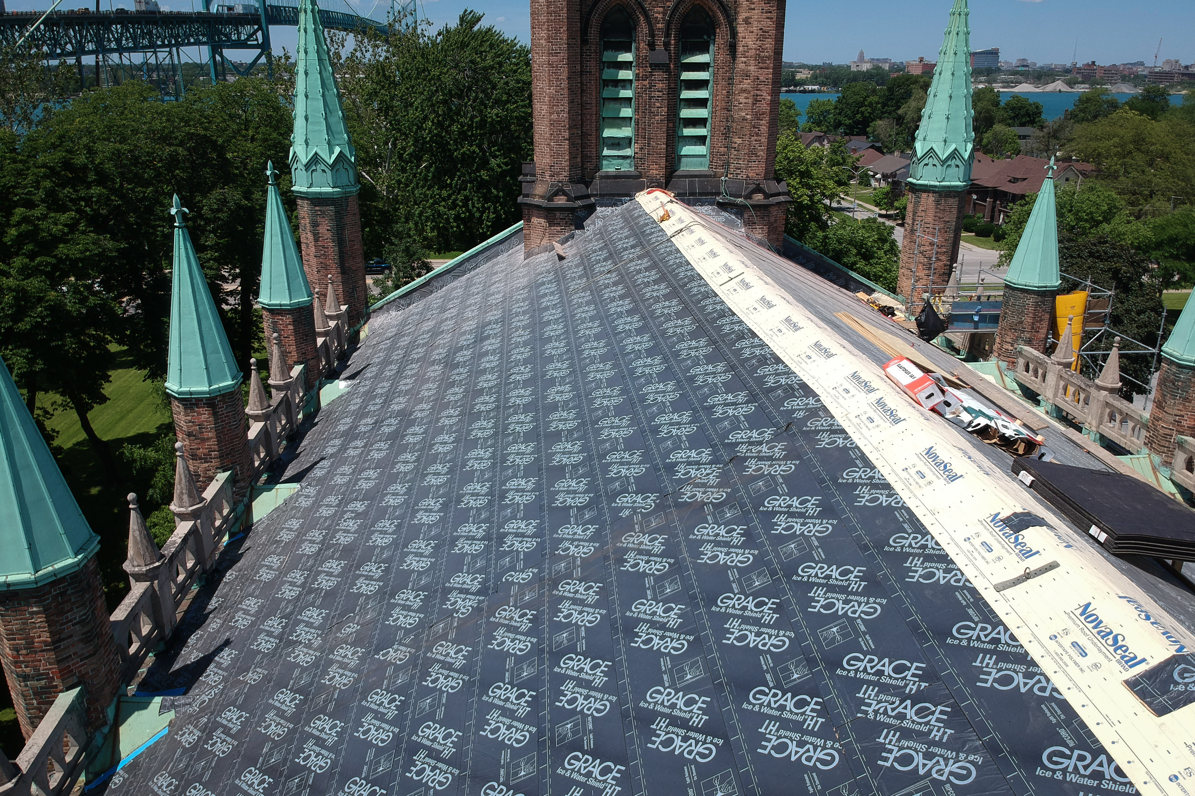 The installation of the copper shingle roof is slated to start in early July with the roof completed by mid-July, weather permitting.