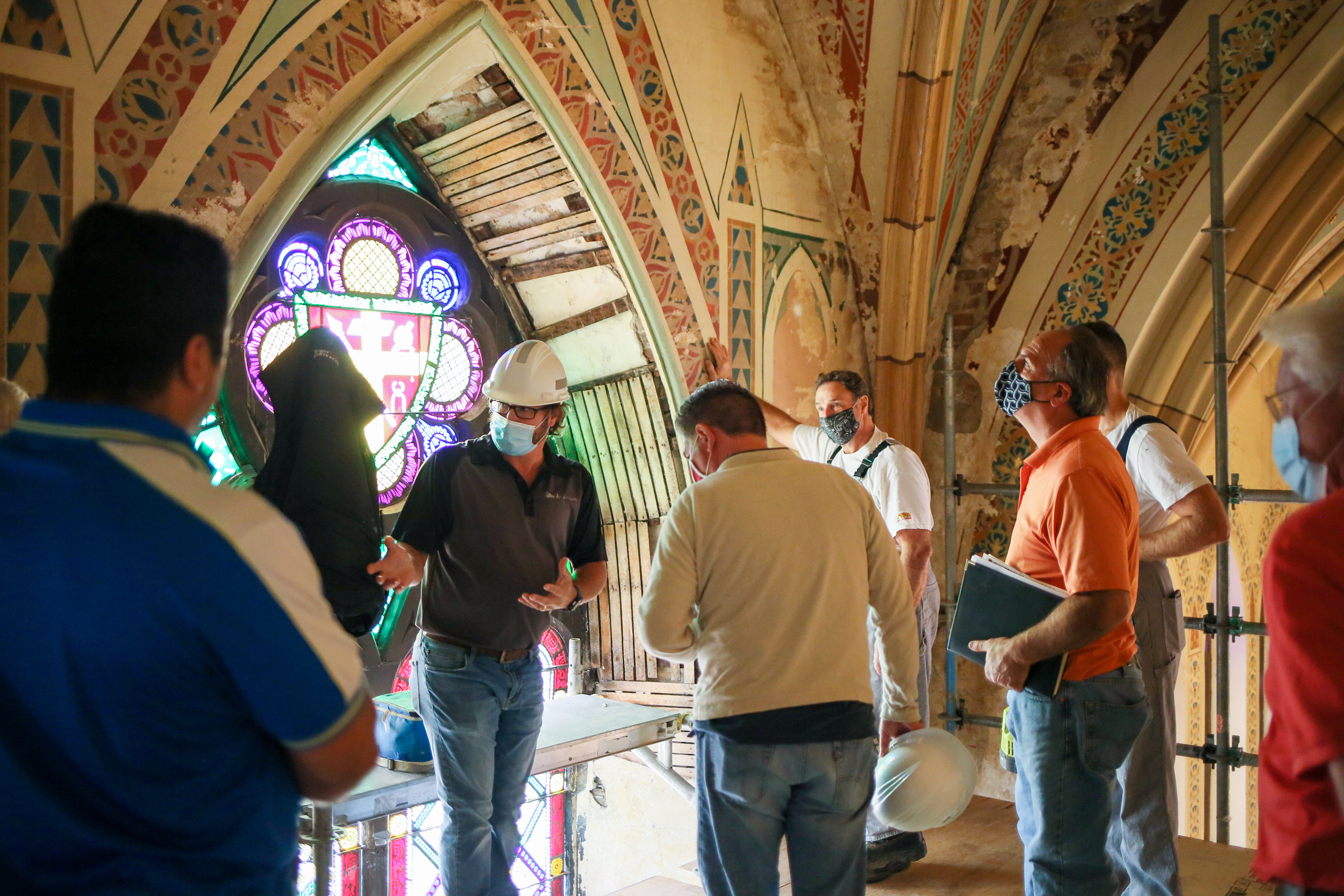 Plaster consolidation has finished in the ceiling of Assumption Church.