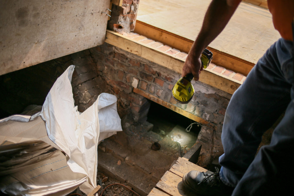 Next steps include removal of the old, damaged plaster in preparation for the application of new plaster.