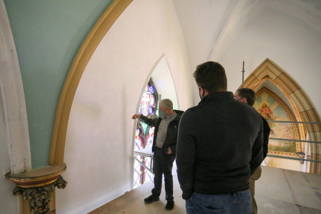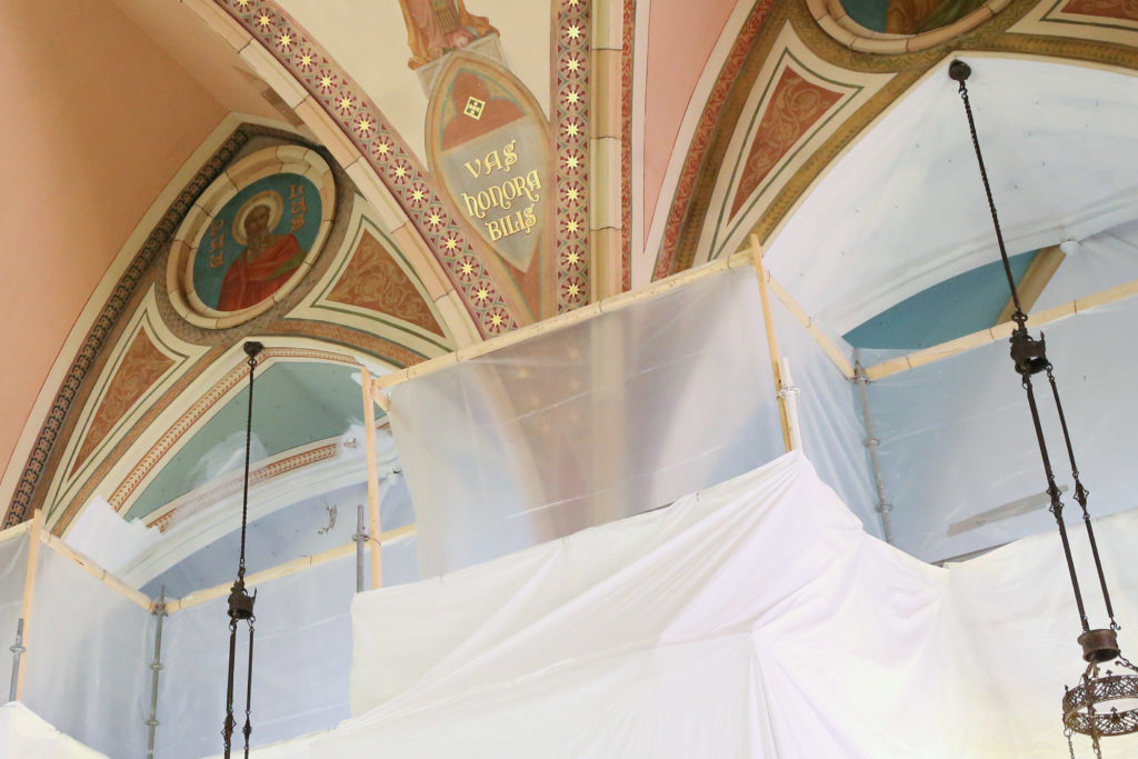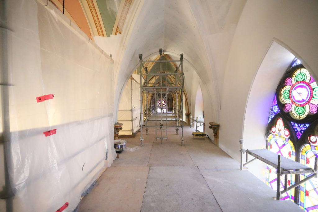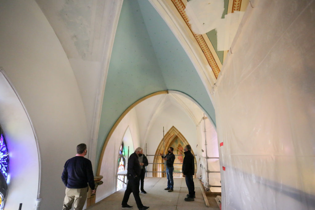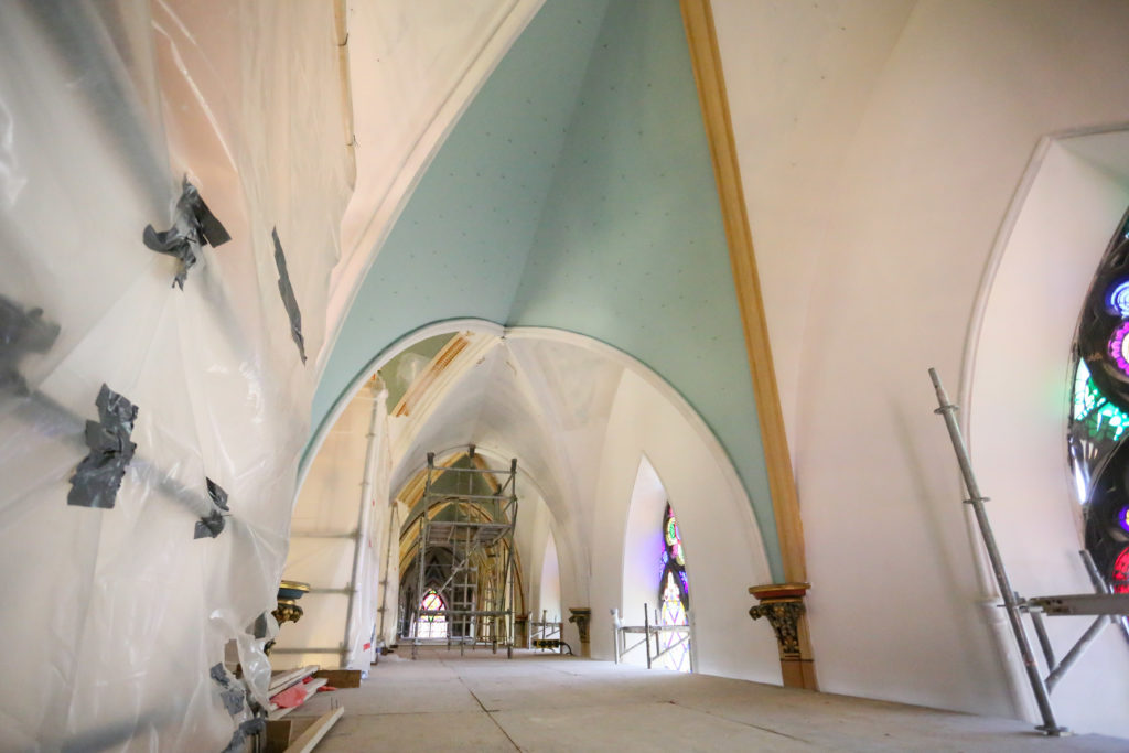 Workers from Star Plastering have completed plaster work on the ceiling of Assumption Church. Painting has now started.