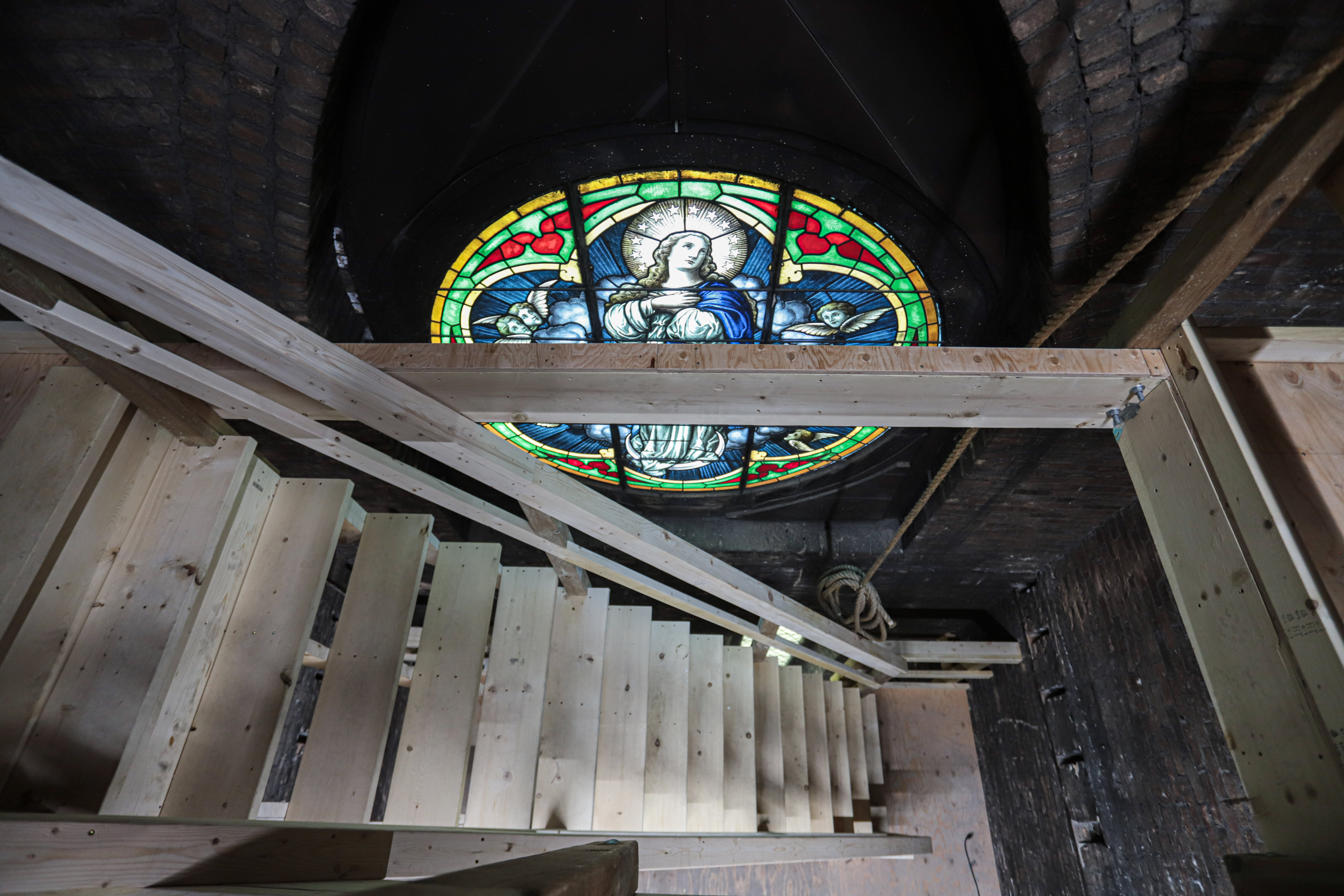 Over the last several months contractors have been constructing a staircase in the bell tower behind the organ.